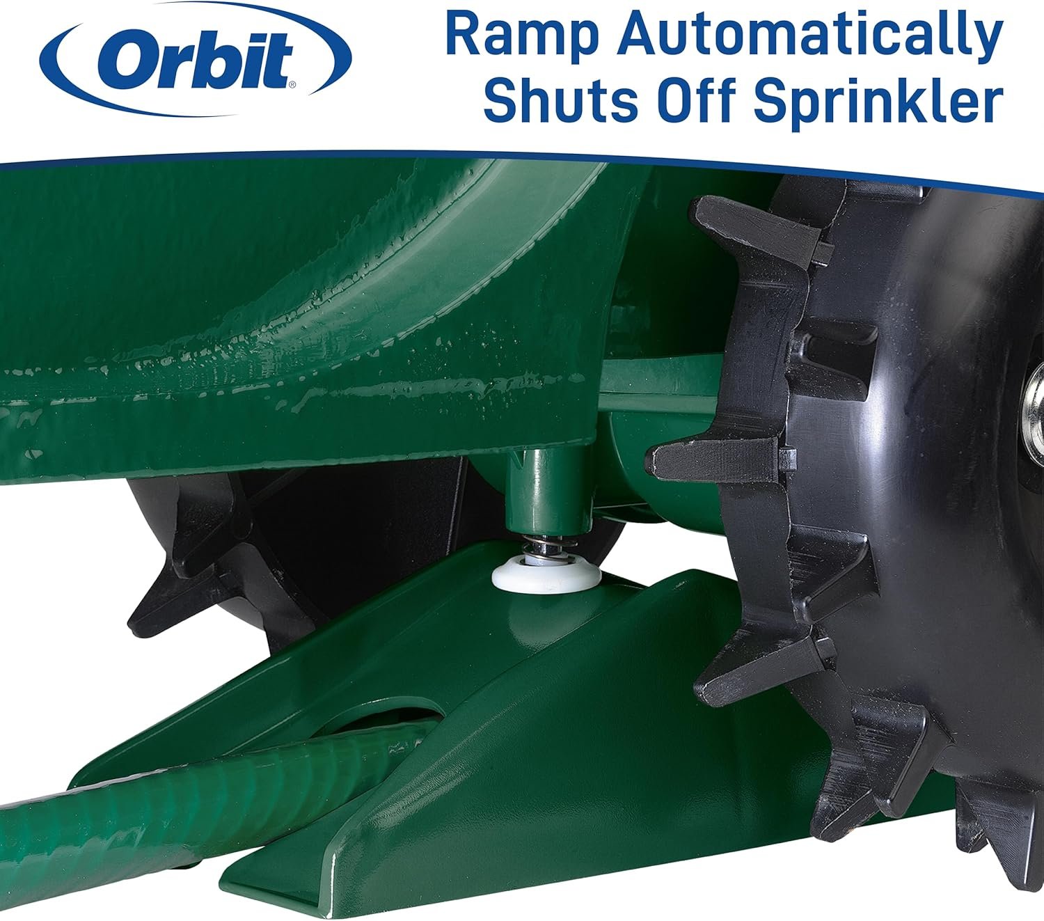 The Orbit 58322 Traveling Tractor Water Sprinkler from the Orbit Store takes the hassle out of lawn watering by automatically following your hose path for customized coverage. Built with a durable cast-iron body and dependable spiked wheels, this heavy-duty sprinkler ensures smooth, even watering every time. With adjustable rotary arms (15–55 ft. diameter) and three-speed settings, it offers flexible and efficient irrigation for any lawn. Upgrade your yard care and enjoy lush, healthy grass with this reliable and easy-to-use sprinkler.