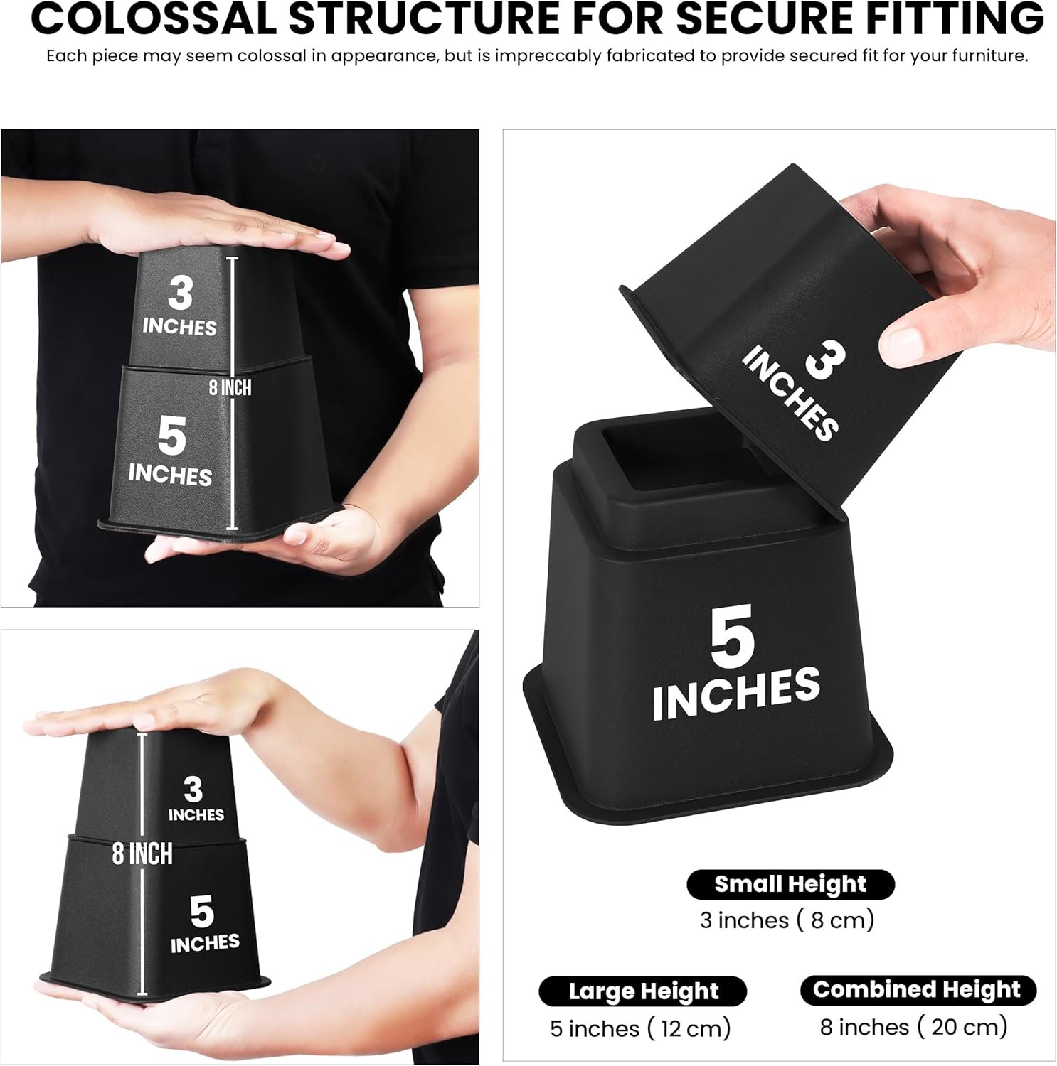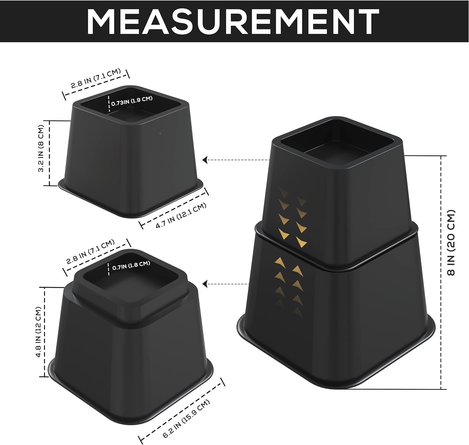 One of the most important features of Adjustable Bed Risers is their stackable configuration. Users can choose the height that best suits their needs, whether they want a small lift or maximum clearance.